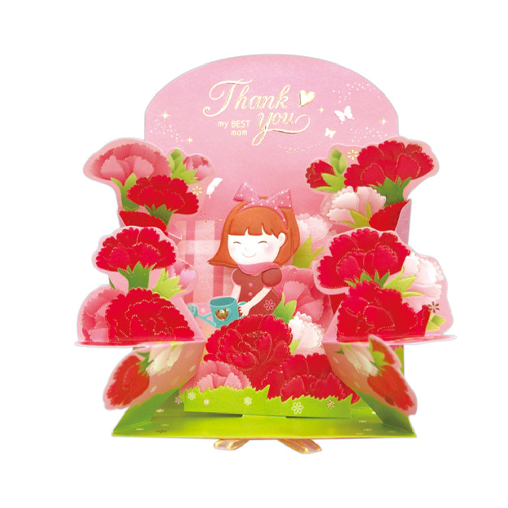 Creative 3D Pop Up Greeting Card Red Carnation Pop Up Card for Mom