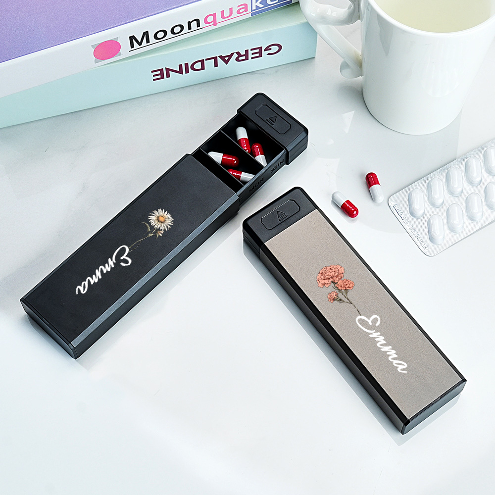 Personalized Magnet Weekly Pill Organizer with Name Birth Flower 7-Day Pill Box Gift