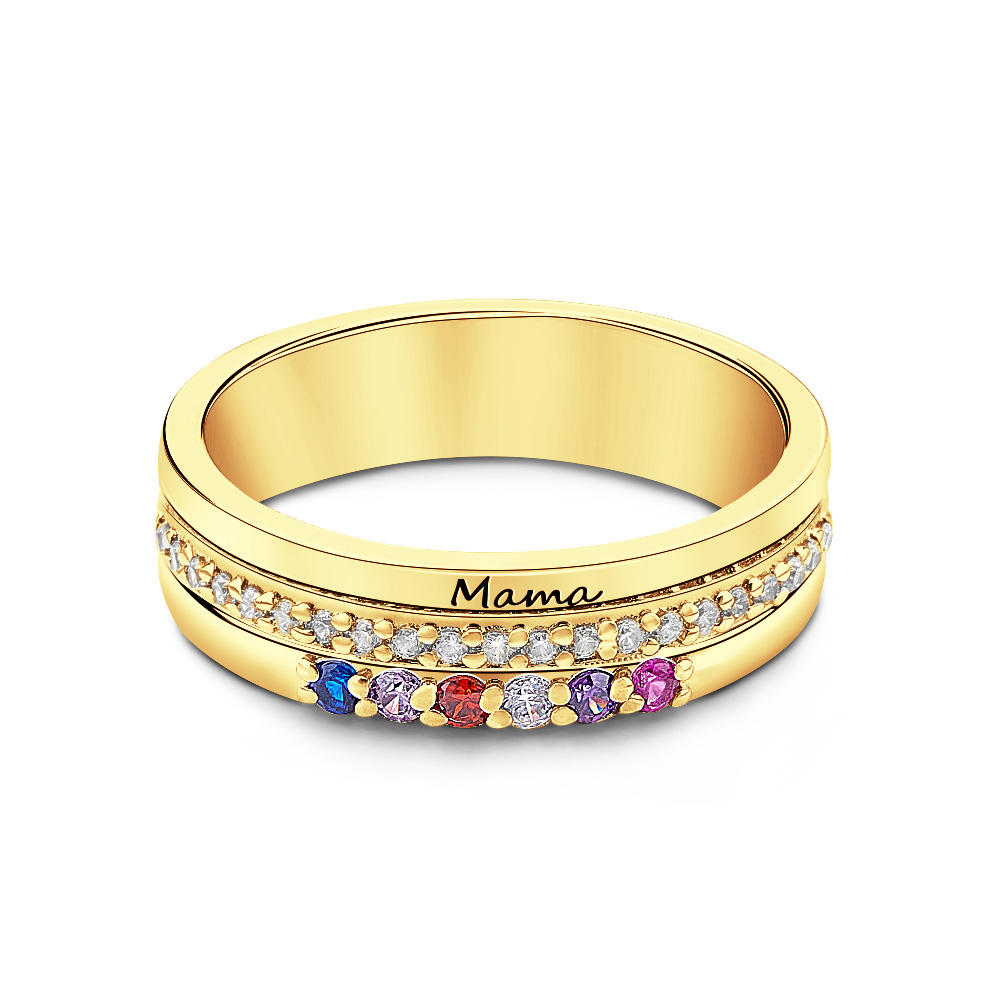 Personalized Birthstones Ring with Engraved Text Family Ring Jewelry Birthday Gift for Mom Grandma
