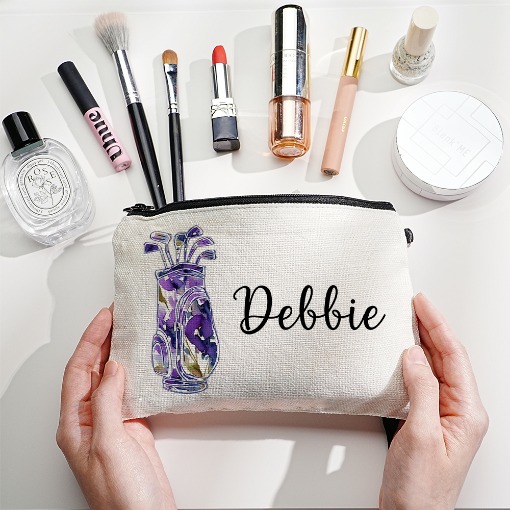 Organize your essentials with flair using our Custom Name Golf Bag Design Canvas Makeup Bag! Perfect for makeup, toiletries, or small accessories, this canvas bag is both durable and lightweight, making it ideal for everyday use or travel.