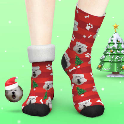 Custom Photo Thick Socks Santa Hat Christmas Pet Gifts