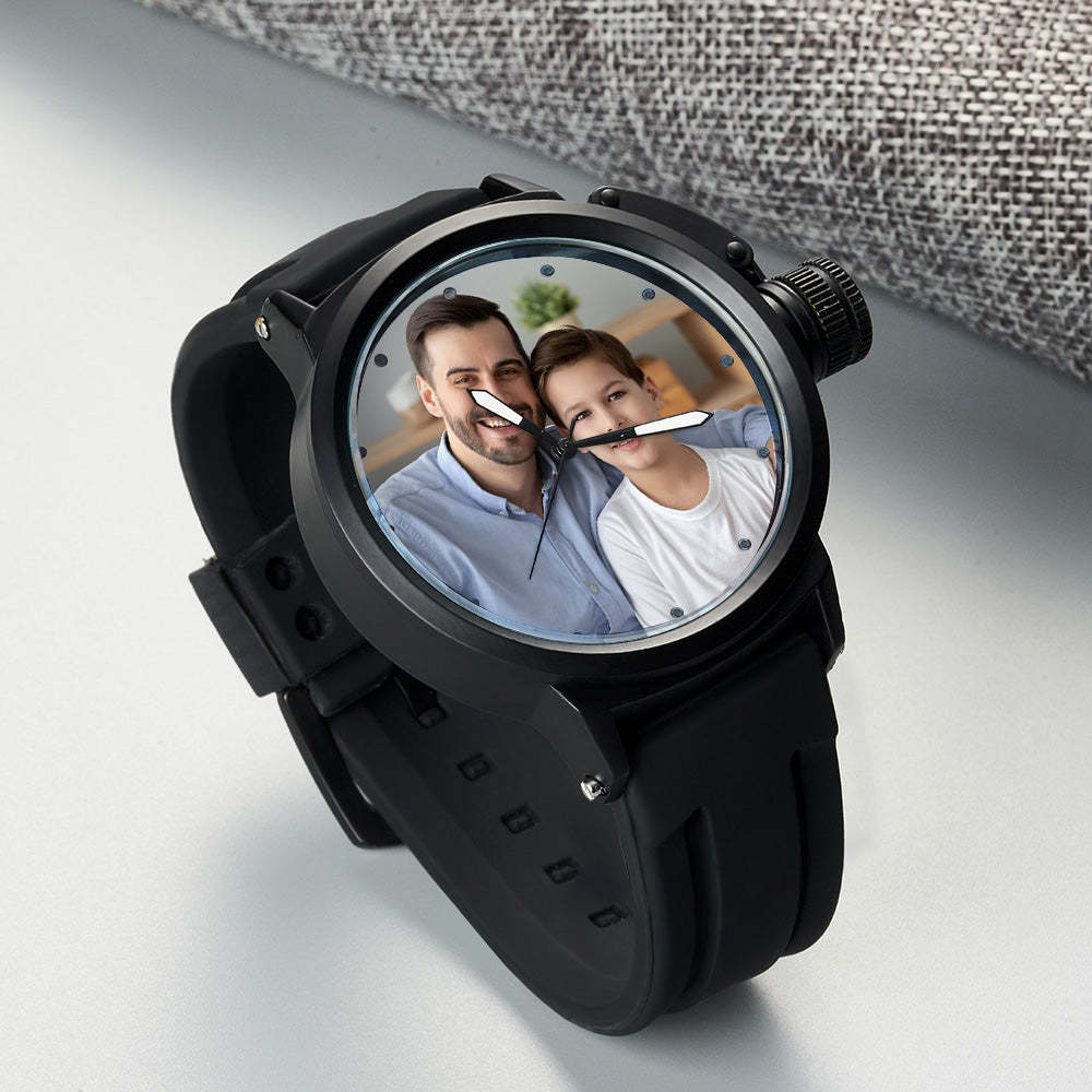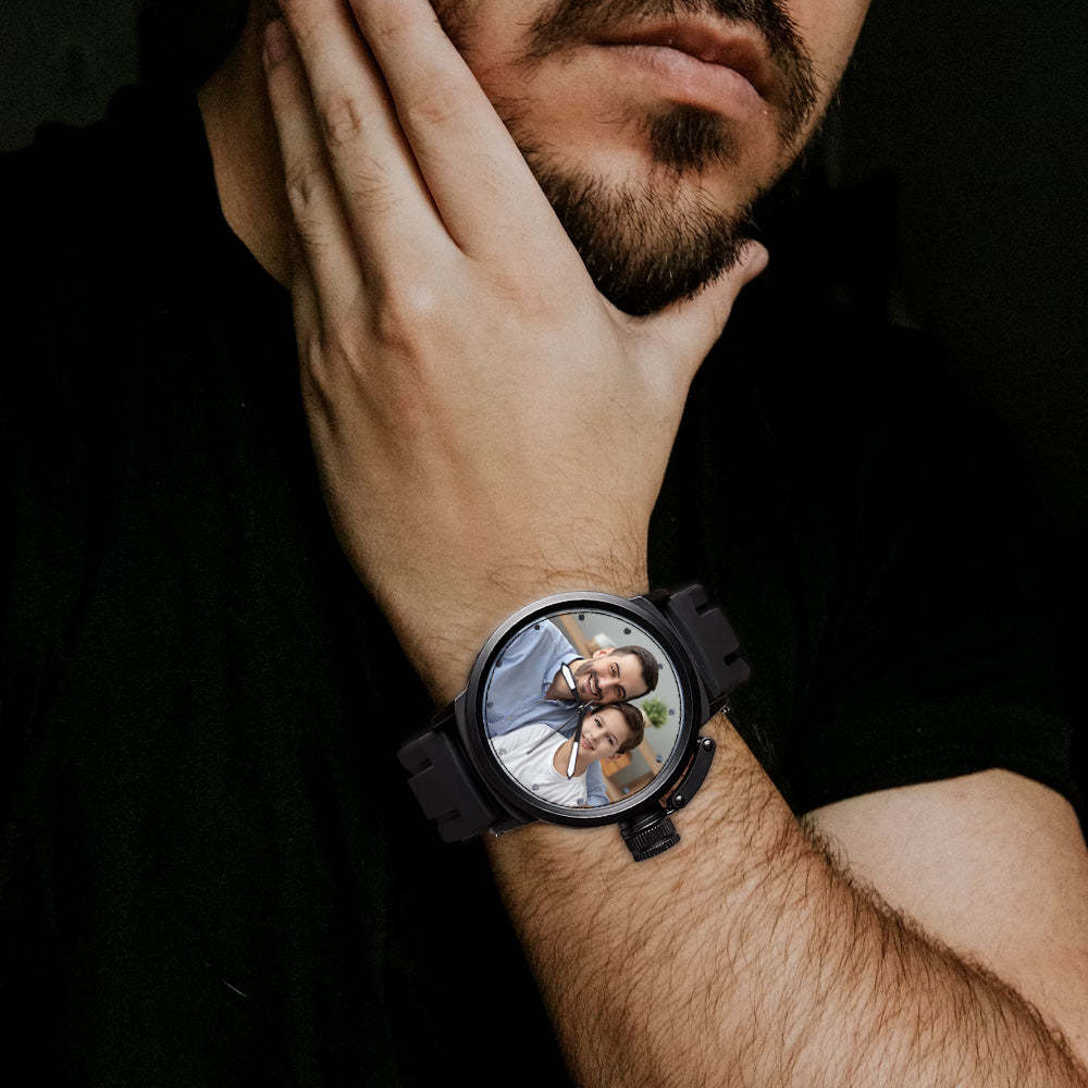 Men's Custom Family Photo Sport Plastic Strap Watch Father's Day Gift