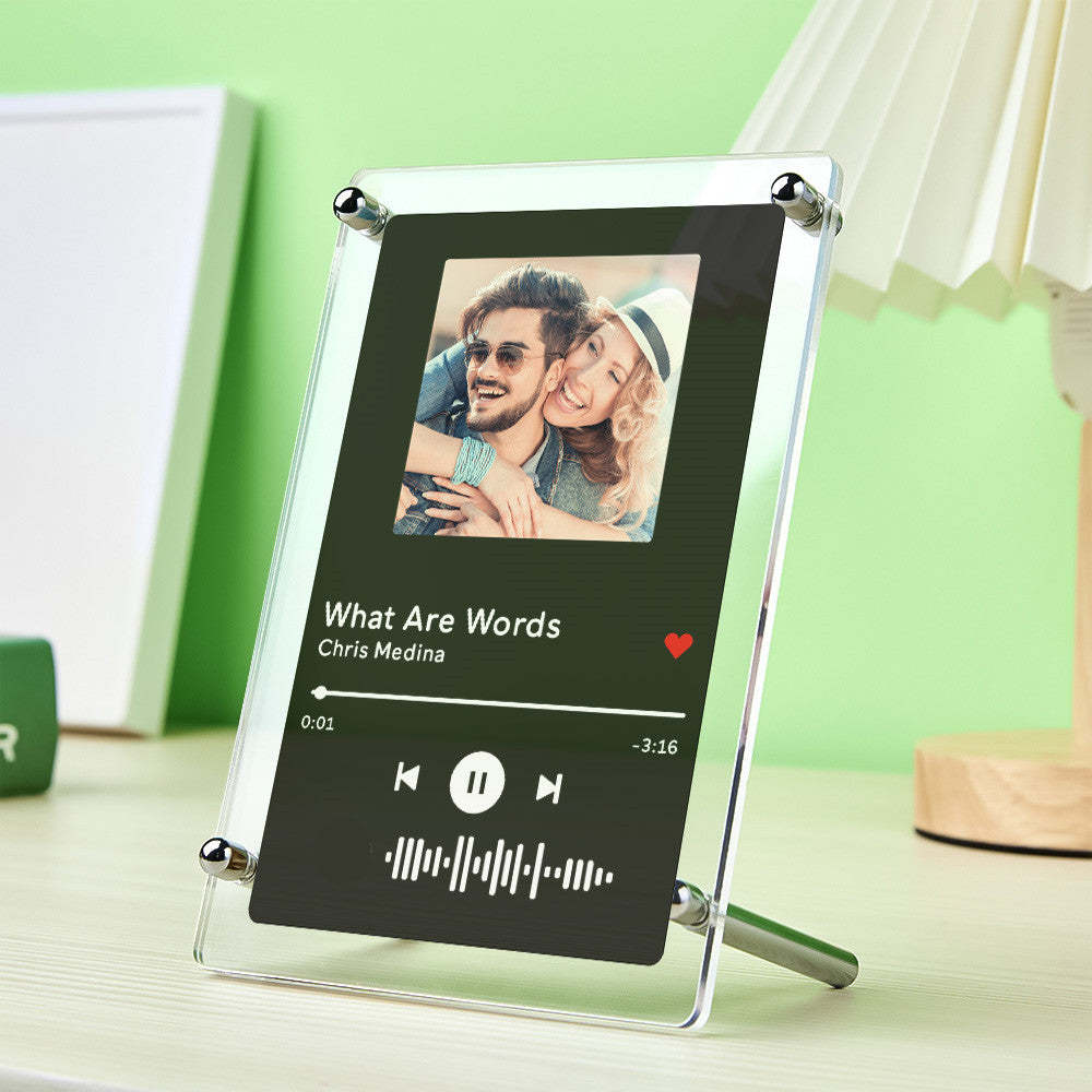 This unique acrylic plaque is a perfect gift for him/her on the anniversary. Custom the music plaques. You can choose any song title, artist name, and favorite photos you want, all can be imprinted on the plaque, then you can generate a unique music code. Please note that the acrylic plaque itself does not emit music. You have to scan the code on the music app, after scanning the code on music, your song will start playing immediately. On any memorable day, this is the most romantic gift, play the most beautiful music for your love.