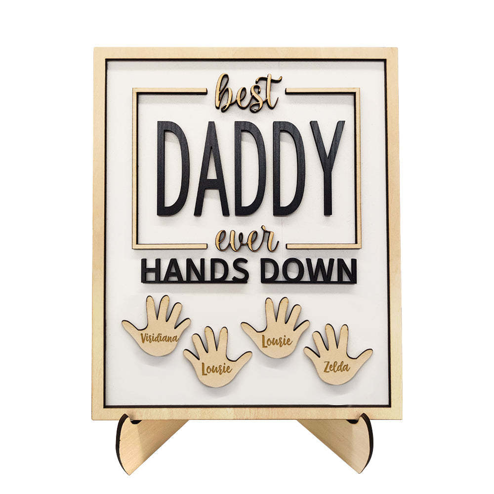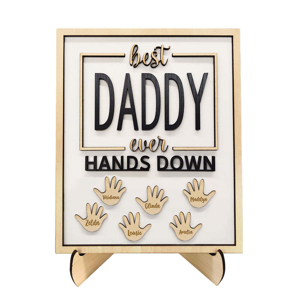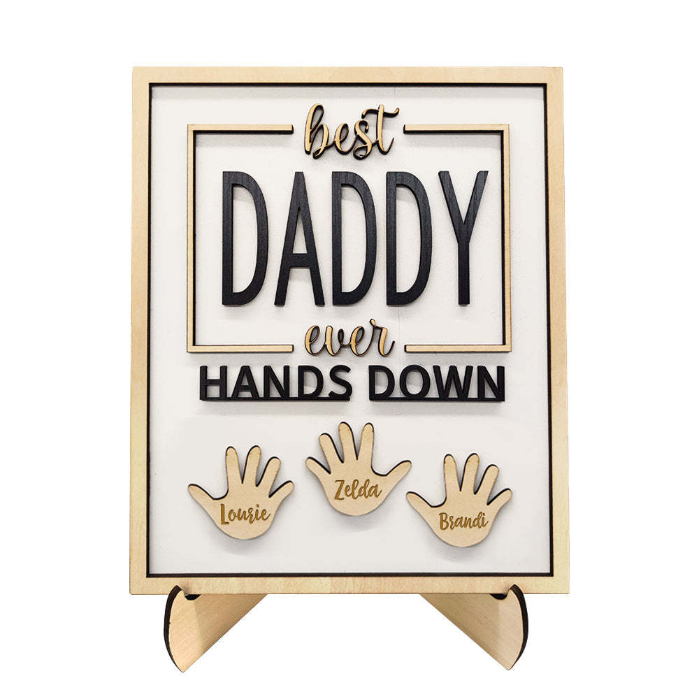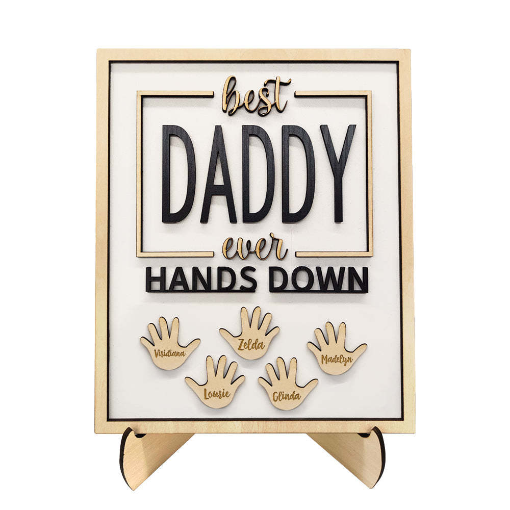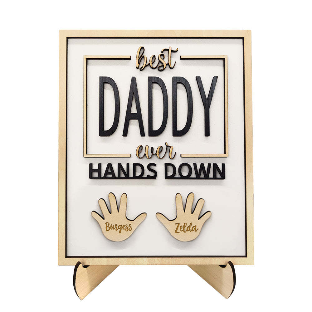 Personalized Best Daddy Ever Hands Down Wooden Plaque with Kids Names Gift for Dad Grandpa