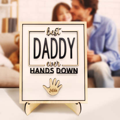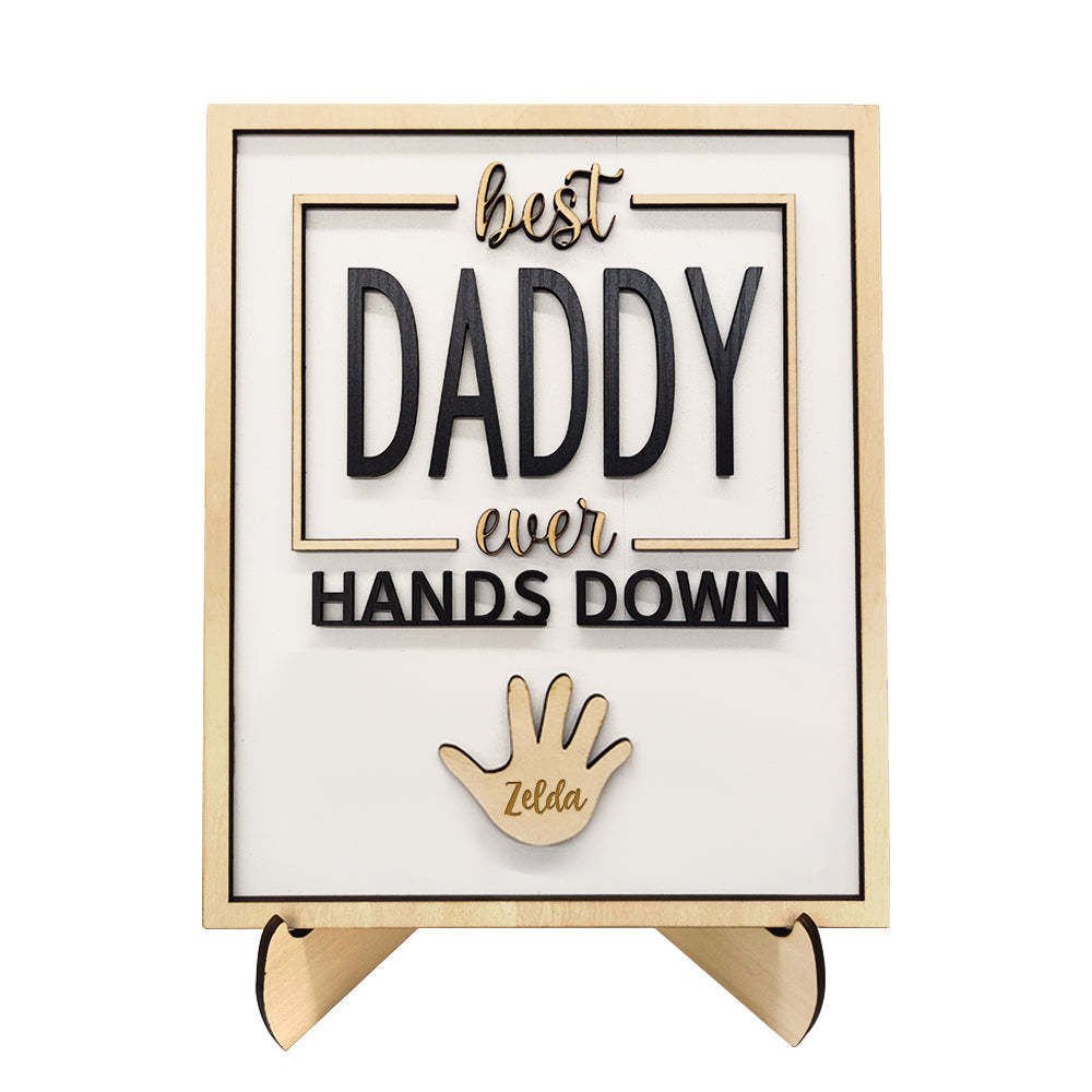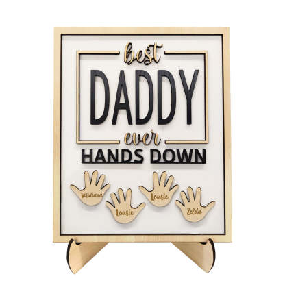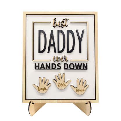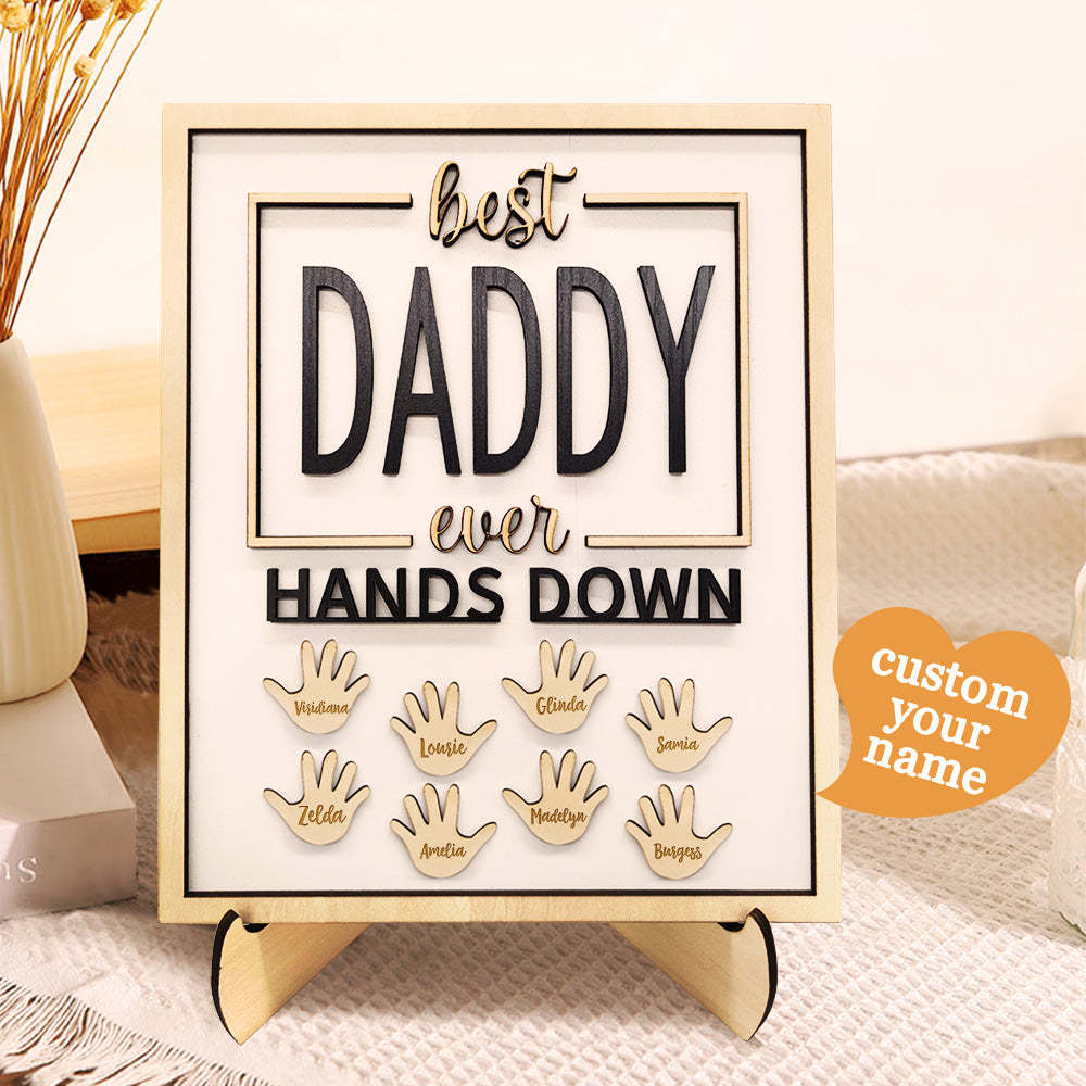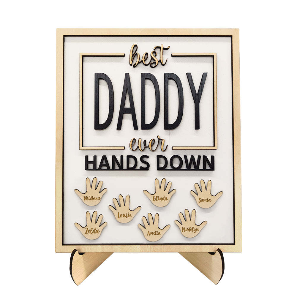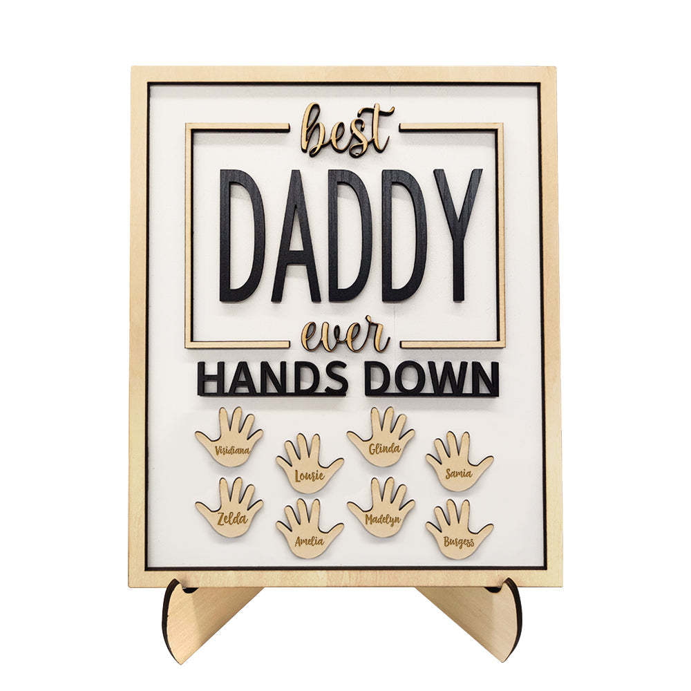 Personalized Best Daddy Ever Hands Down Wooden Plaque with Kids Names Gift for Dad Grandpa
