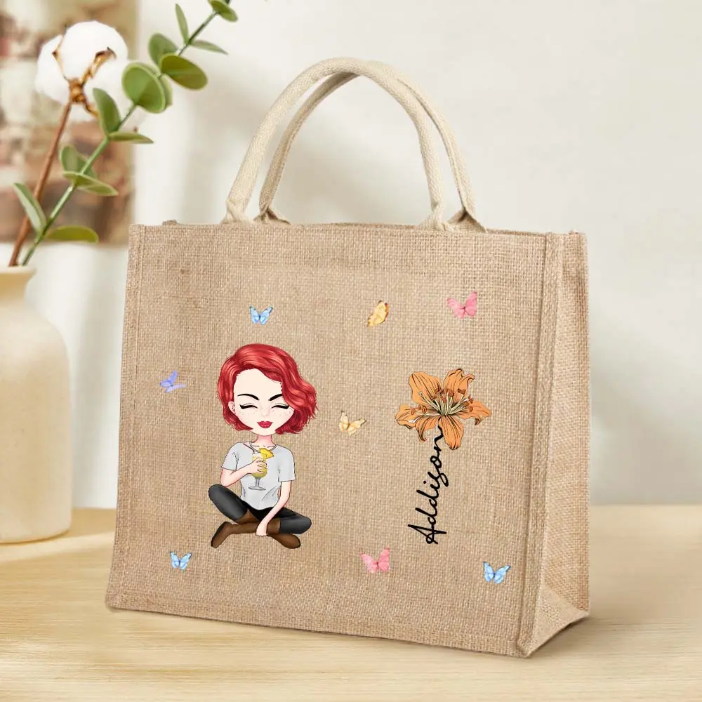 Ideal for any occasion, this Personalized Birth Flower Beach Jute Tote Bag is a must-have for women. Made of durable jute material, this bag features your name and birth flower, making it a perfect birthday, wedding, or party gift. Stay stylish and organized with this practical yet personalized tote bag.
