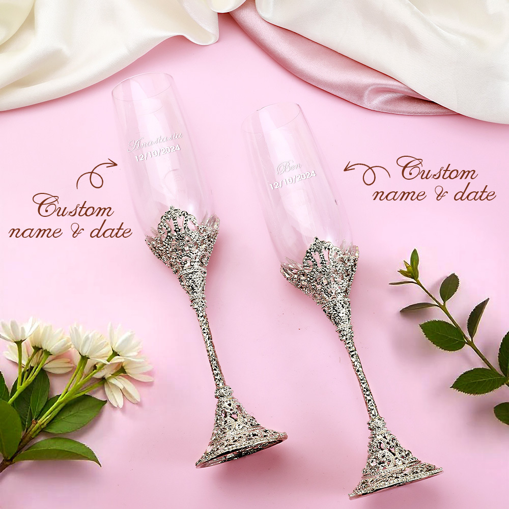 Enhance your special day with our Personalized Champagne Flutes Toasting Glasses, crafted specifically for weddings. With the ability to customize for the bride and groom, these glasses make the perfect gift, adding a personal touch to your celebration. Make your toast extra special and memorable with these elegant, personalized flutes.