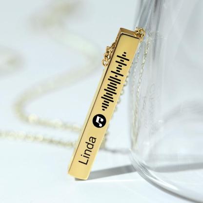 Create a unique and meaningful gift with our Personalized Custom Music Scan Song Code Necklace. This flexible square-shaped bar necklace features an engraved name pendant, making it a perfect gift for music lovers. Simply scan the code to listen to your favorite song anytime, anywhere. Give a personalized and stylish jewelry gift that will be cherished forever.