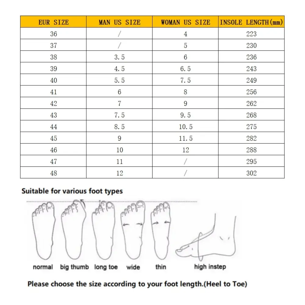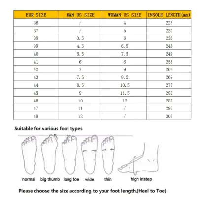 EU Size: 36,37, 38, 39, 40, 41, 42, 43, 44, 45, 46, 47, 48