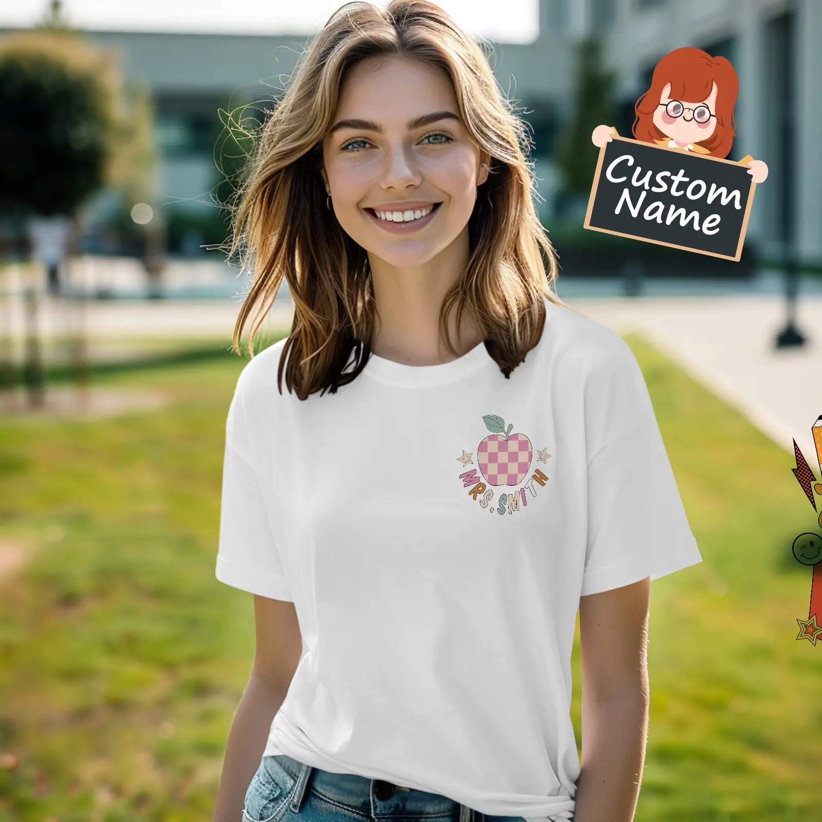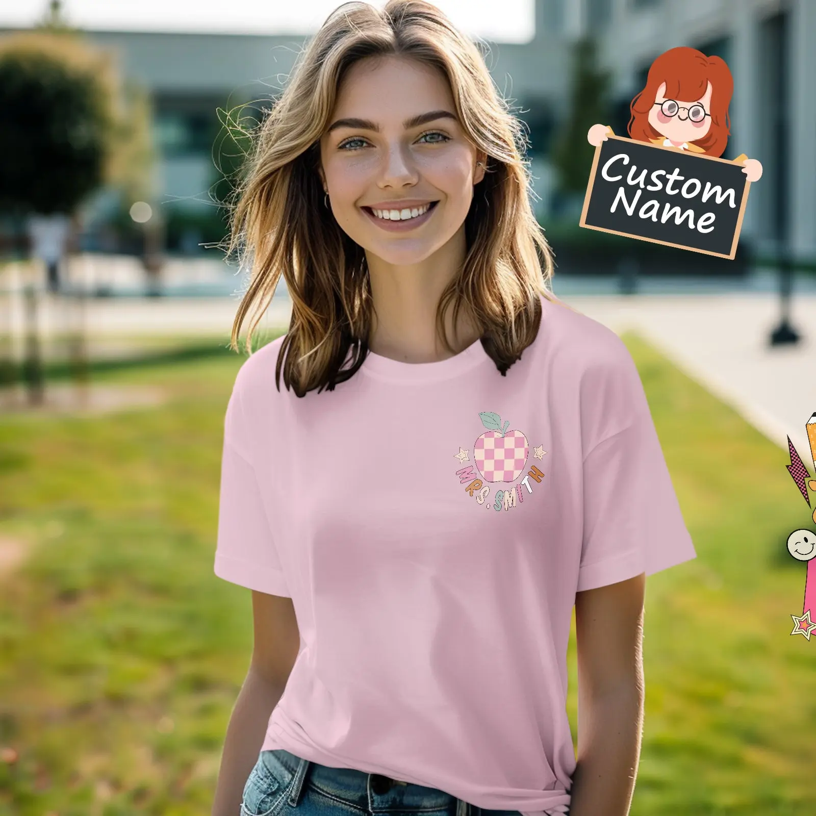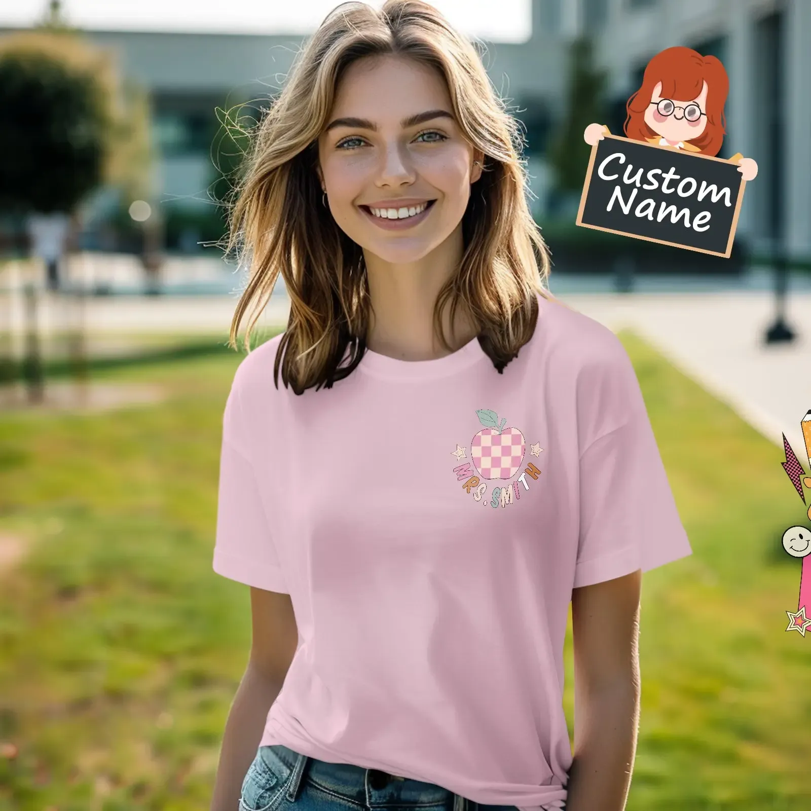 This personalized t-shirt is the perfect gift for teachers, featuring a custom name design and "In My Teacher Era" print. Show appreciation for educators and their impact with this unique back-to-school present. Made with high-quality materials and available in various sizes.