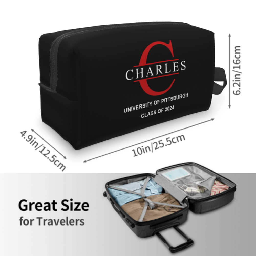 Start the school year in style with our personalized initials and custom text toiletry bag. Perfect for back-to-school season, this versatile bag can be customized with your initials, name, or special message, making it a unique and thoughtful gift for students of all ages. Whether used for organizing school supplies or toiletries, its durable design ensures both practicality and personal flair. A great gift to kick off the new academic year with a touch of personality!