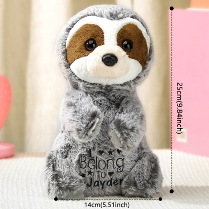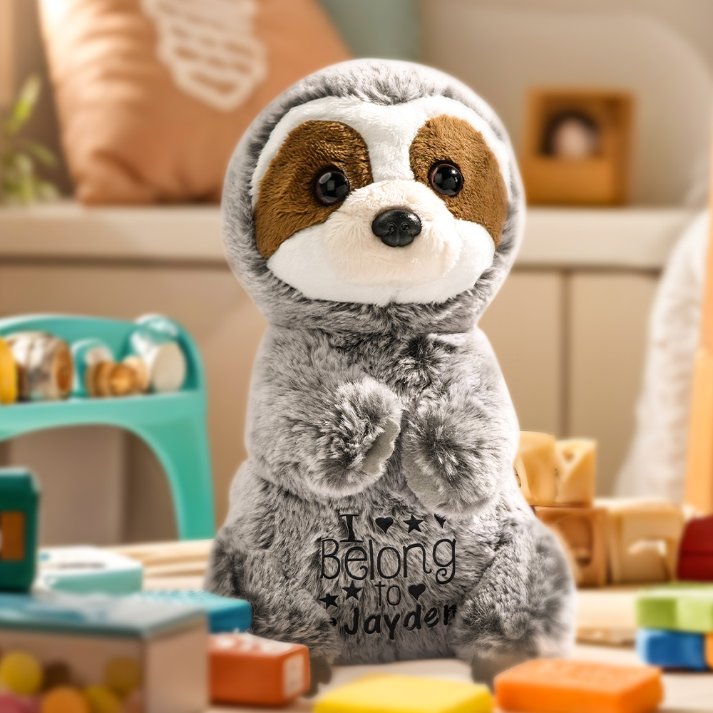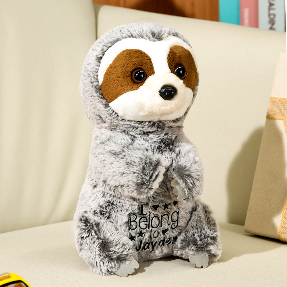 This personalized sloth plush stuffed toy makes the perfect gift for a baby shower! Handcrafted with high-quality materials, each toy is customized with the baby's name for a unique touch. Soft and cuddly, it is sure to become an instant favorite for both the baby and parents. Give the gift of comfort and personalization with this adorable stuffed toy.