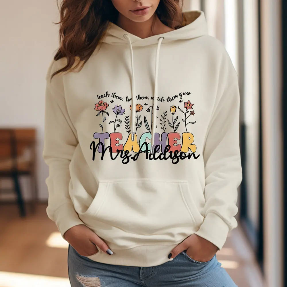 Personalized Wildflower Hooded Sweatshirt Teacher Custom Name Hooded Sweatshirt Back to School Gifts