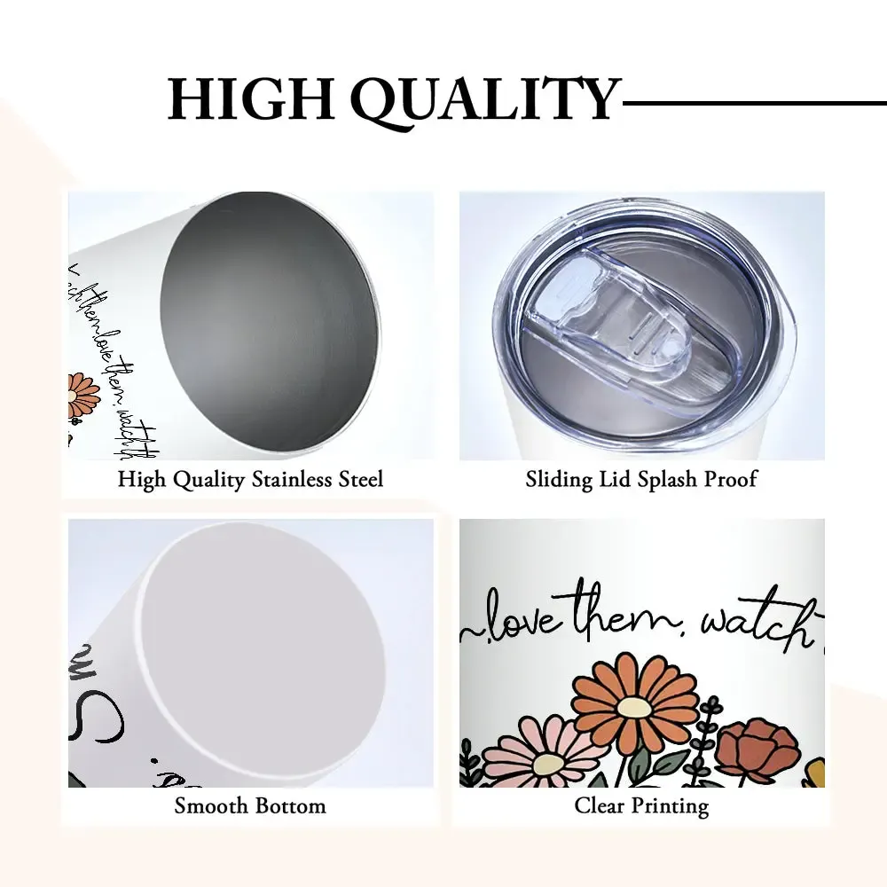 Personalized Wildflowers 20oz Name Skinny Tumbler with Straw Appreciation Gift for Teacher Back to School Gift