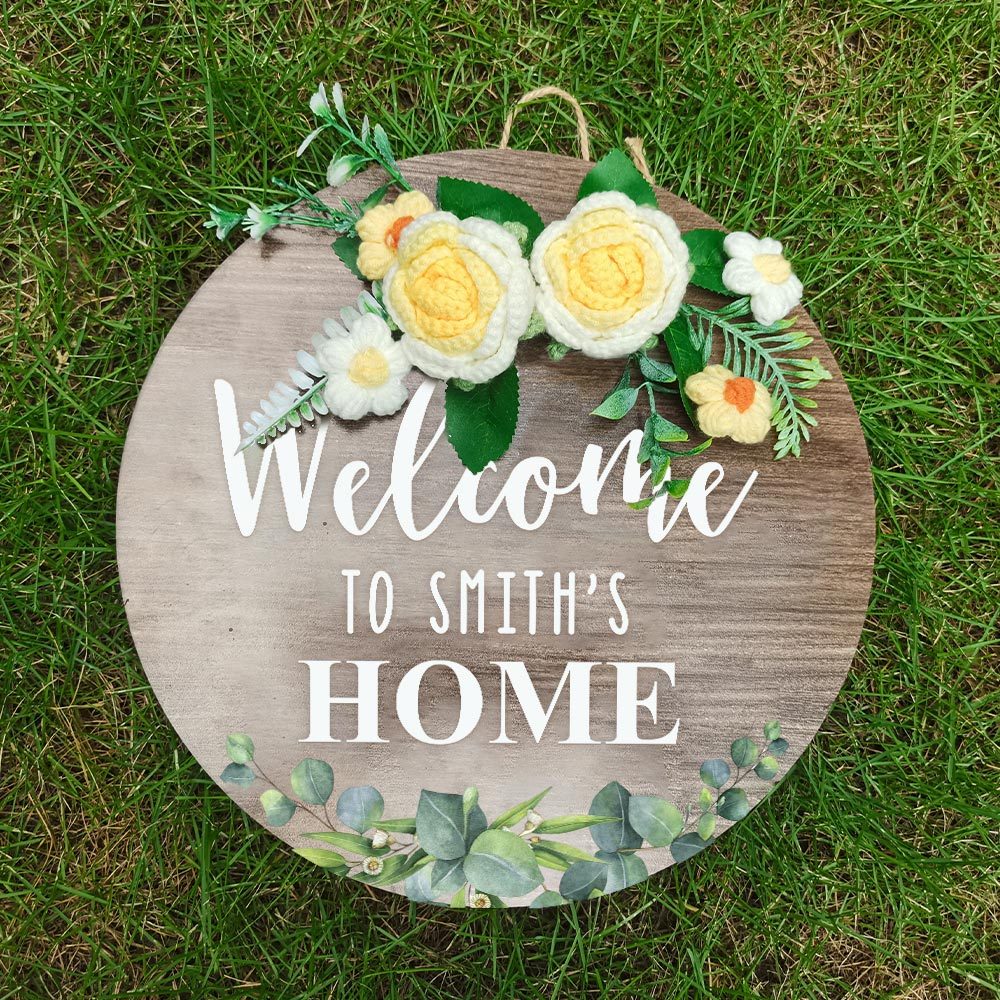 Welcome Door Sign Crocheted Flower Custom Text Front Door Decorations Unique Gifts